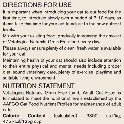 Vetalogica Naturals Grain Free Lamb Adult Cat Food